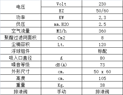 • 塵桶容量120 lt.,排水很方便,可通過底部的排水閥直接排出。